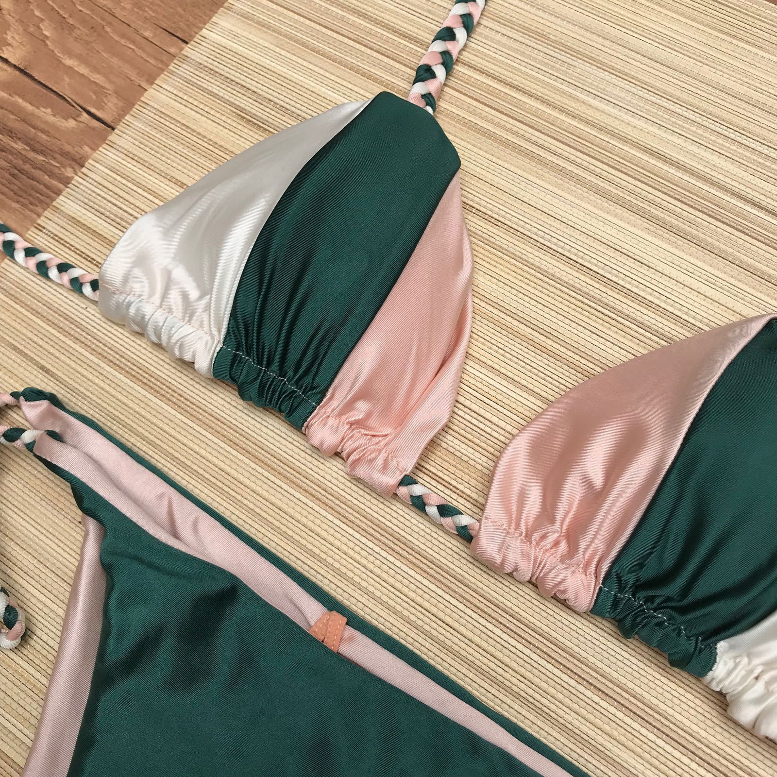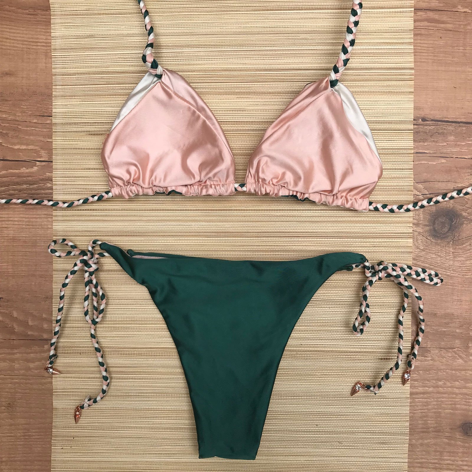 Biquíni Cortininha Trança Dupla Face – Verde/Rosé