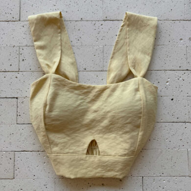 CONJUNTO TRICO CROPPED E SHORT TRAMA DETALHADA AMARELO