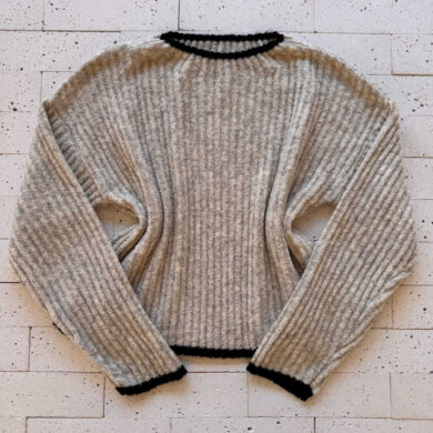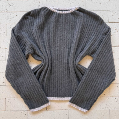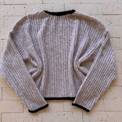 CONJUNTO TRICO MOUSSE CROPPED COM LISTRA E PANTALONA CINZA