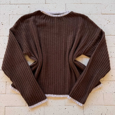 CONJUNTO TRICO MOUSSE CROPPED COM LISTRA E PANTALONA MARROM