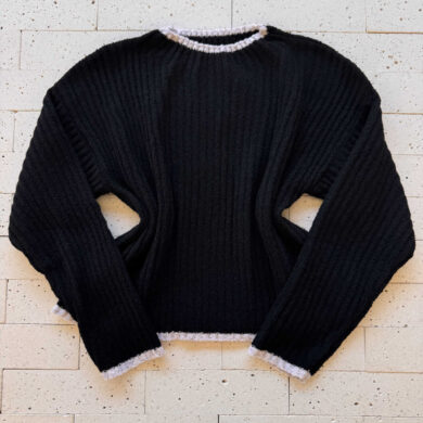 CONJUNTO TRICO MOUSSE CROPPED COM LISTRA E PANTALONA PRETO
