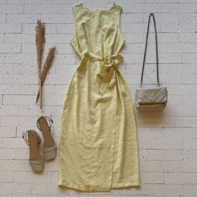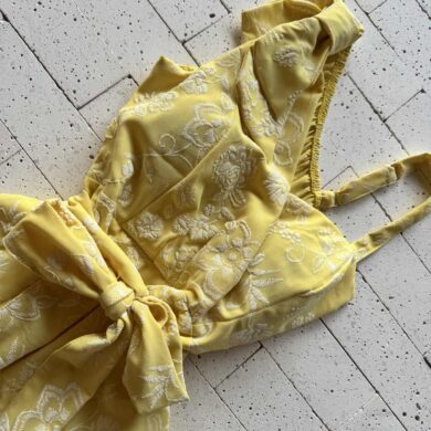 VESTIDO BORDADO LAÇO NO OMBRO E AMARRAÇÃO FIXA AMARELO