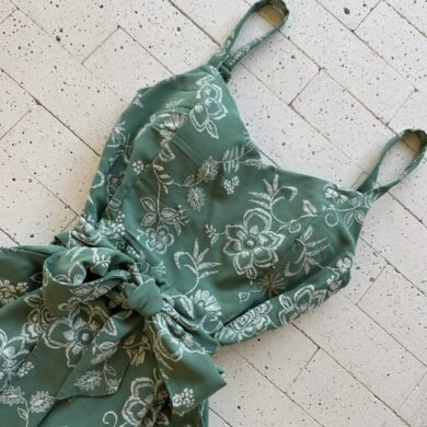 VESTIDO BORDADO LAÇO NO OMBRO E AMARRAÇÃO FIXA VERDE 2.0