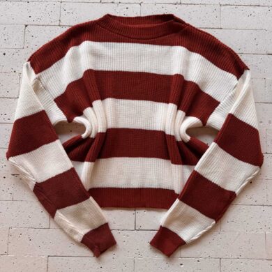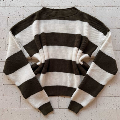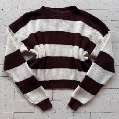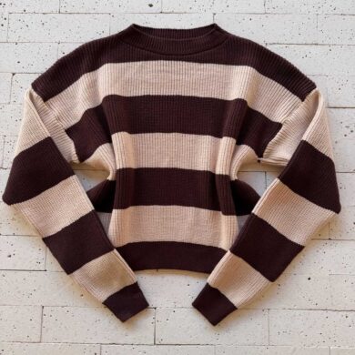 CROPPED TRICO ALONGADO MANGA LONGA LISTRADO CAFÉ E BEGE