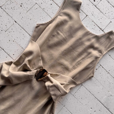 VESTIDO DETALHE DRAPEADO COM FIVELA NA CINTURA BEGE