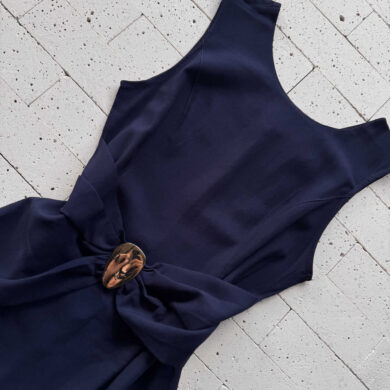 VESTIDO DETALHE DRAPEADO COM FIVELA NA CINTURA MARINHO