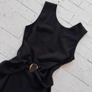 VESTIDO DETALHE DRAPEADO COM FIVELA NA CINTURA PRETO