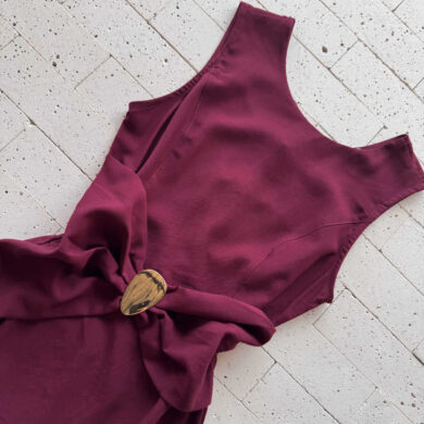 VESTIDO DETALHE DRAPEADO COM FIVELA NA CINTURA VINHO
