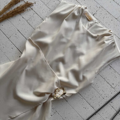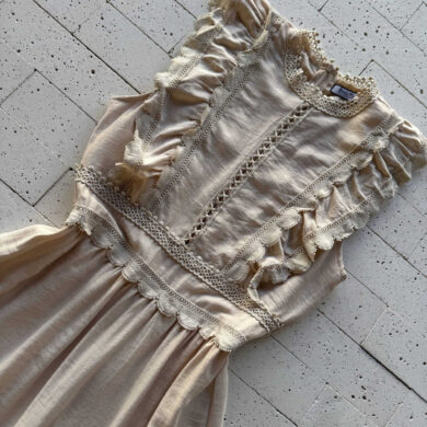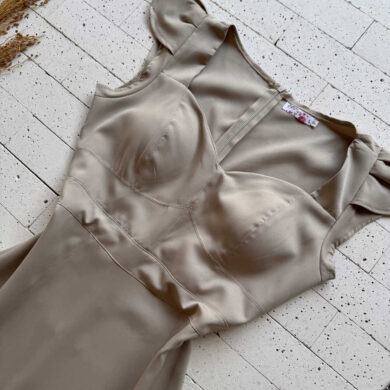 VESTIDO LONGO DETALHADO ALCINHA E AMARRAÇÃO FIXA BEGE