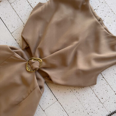 VESTIDO CAMADAS COM ALÇA E AMARRAÇÃO TRANÇADA NUDE