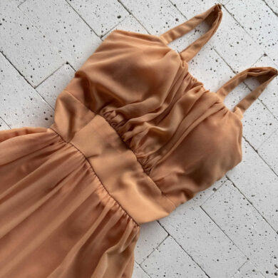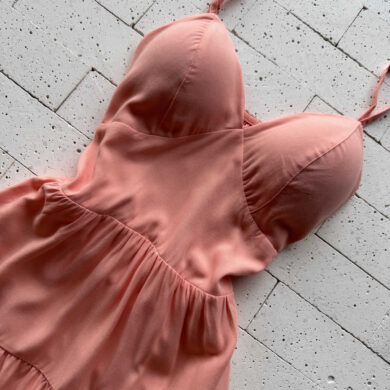 VESTIDO CHIFON COM BOJO DETALHE BABADINHOS SALMÃO