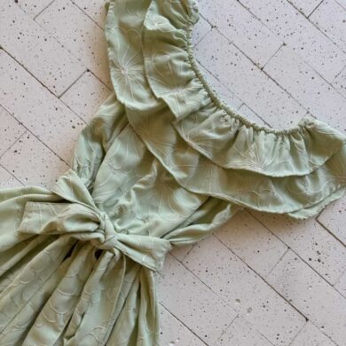 VESTIDO CIGANINHA BORDADO LUREX COM AMARRAÇÃO FIXA VERDE CLARO