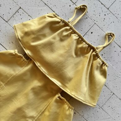 VESTIDO CAMADAS COM ALÇA E AMARRAÇÃO TRANÇADA AMARELO