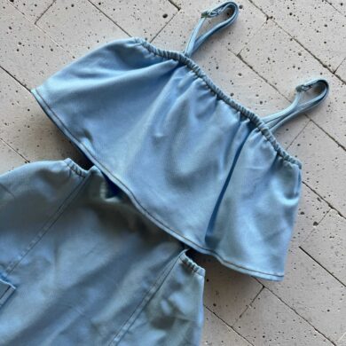 VESTIDO COTTON DETALHE BOLSOS E ABERTURA NA CINTURA AZUL