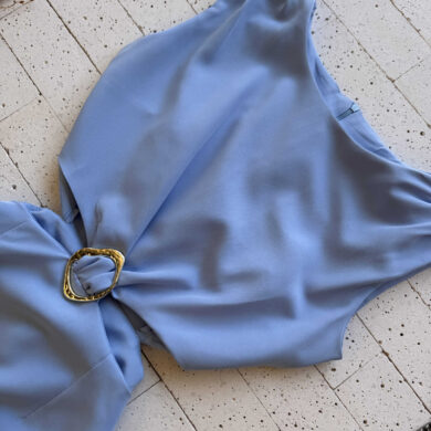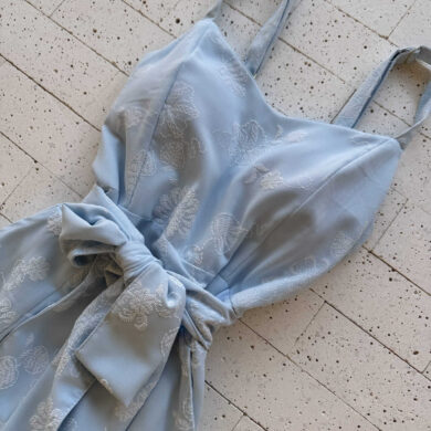 VESTIDO LONGO BORDADO ALCINHA E AMARRAÇÃO FIXA AZUL CARO