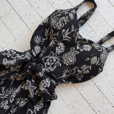 VESTIDO LONGO BORDADO LAÇO NO OMBRO E AMARRAÇÃO FIXA PRETO