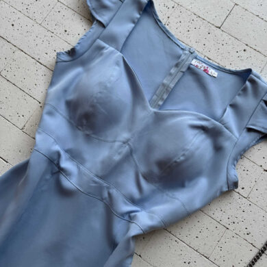 VESTIDO MIDI DECOTE PRINCESA E BARRA DETALHADA AZUL