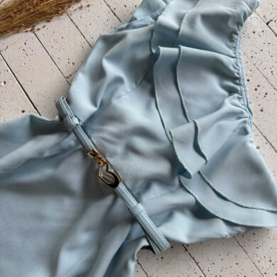 VESTIDO MIDI FORRADO UM OMBRO SÓ BABADOS E FENDA AZUL