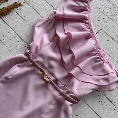 VESTIDO MIDI FORRADO UM OMBRO SÓ BABADOS E FENDA ROSA