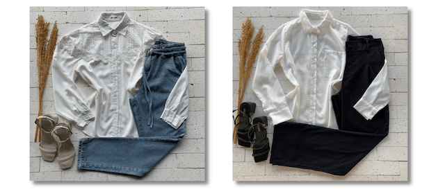 - Corpo triangular: blusas com decote V, calças flare, saias evasê e peças com detalhes na região do busto;