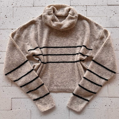 CONJUNTO TRICO MOUSSE CROPPED LISTRA E CALÇA PANTALONA BEGE 2.0