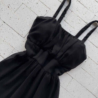 VESTIDO CHIFON COM BOJO DETALHE BABADINHOS PRETO