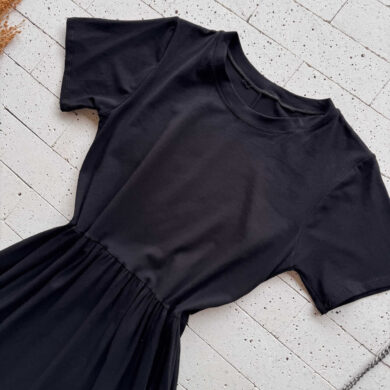 VESTIDO MIDI MOLETINHO COM MANGUINHA E CAMADAS PRETO