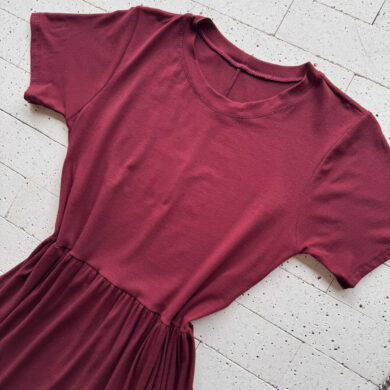 VESTIDO MIDI MOLETINHO COM MANGUINHA E CAMADAS VINHO