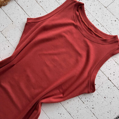 VESTIDO REGATA MIDI MOLETINHO COM BOLSOS E FENDAS CARMIM