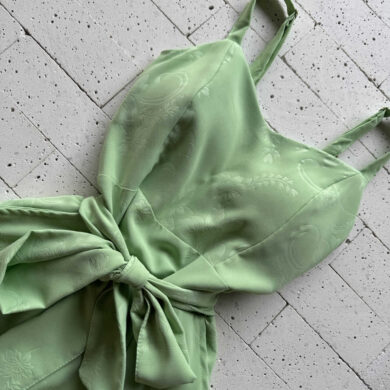 VESTIDO CREPE DETALHADO ALCINHA E CINTO FAIXA VERDE