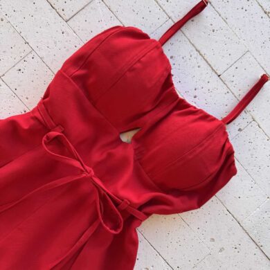 -15% Dondoca_com_br Macaquinho Marrant Detalhe Vinco No Busto E Cordao Vermelho