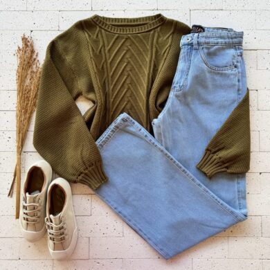 BLUSA TRICO DETALHE TRAMAS EM DIAGONAL VERDE OLIVA