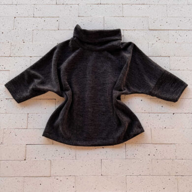 CONJUNTO LANZINHA BLUSA MANGUINHA E SAIA MIDI COM FENDA CINZA