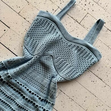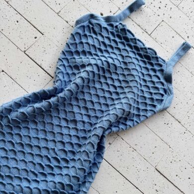 VESTIDO TRICO LONGUETE COM FENDA E ABERTURA NA CINTURA AZUL