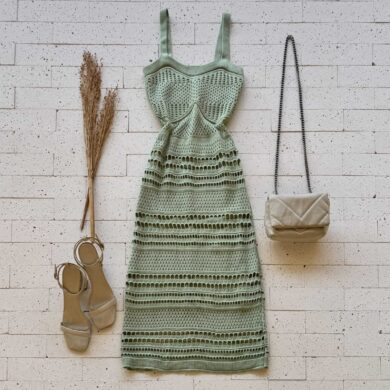 VESTIDO TRICO LONGUETE COM FENDA E ABERTURA NA CINTURA MENTA