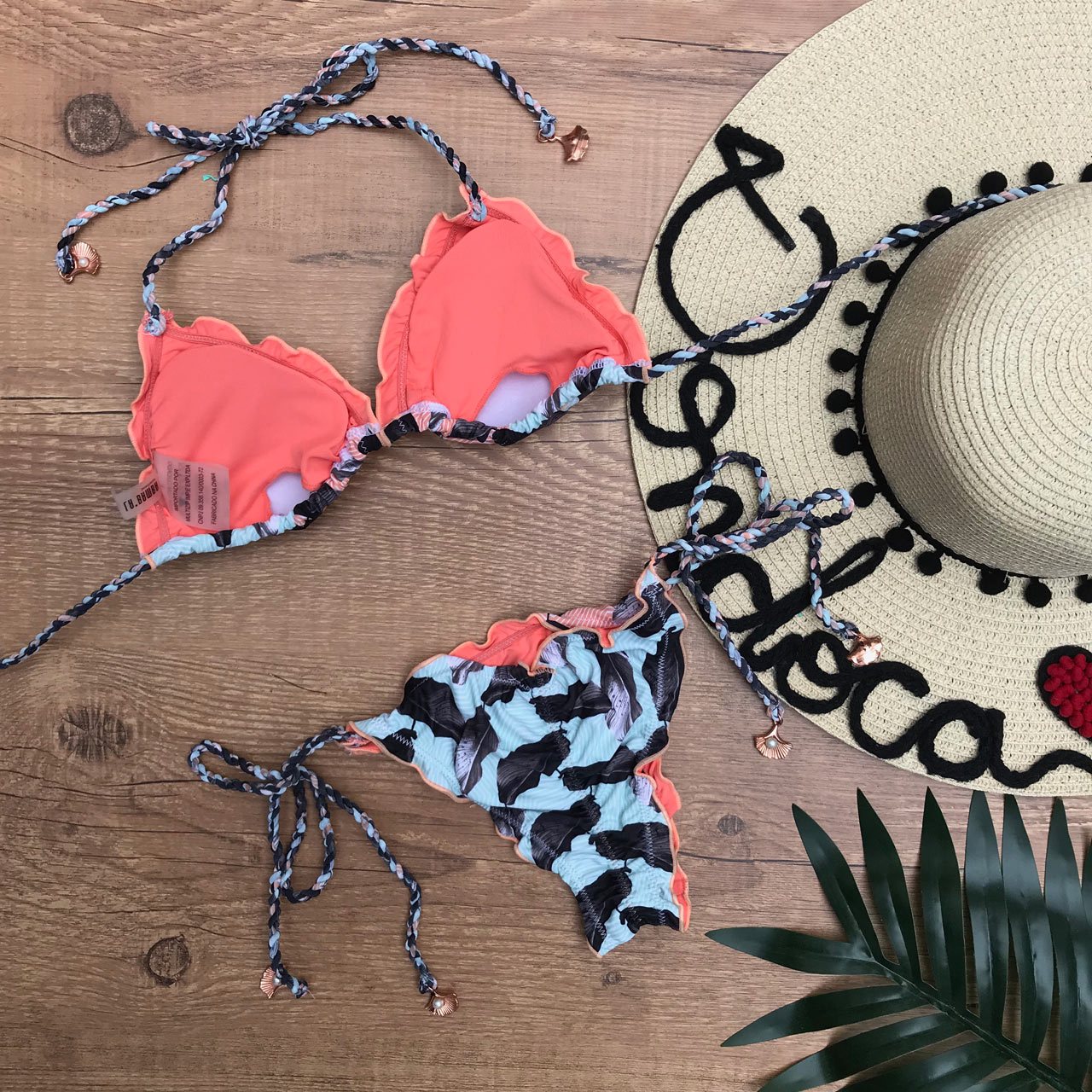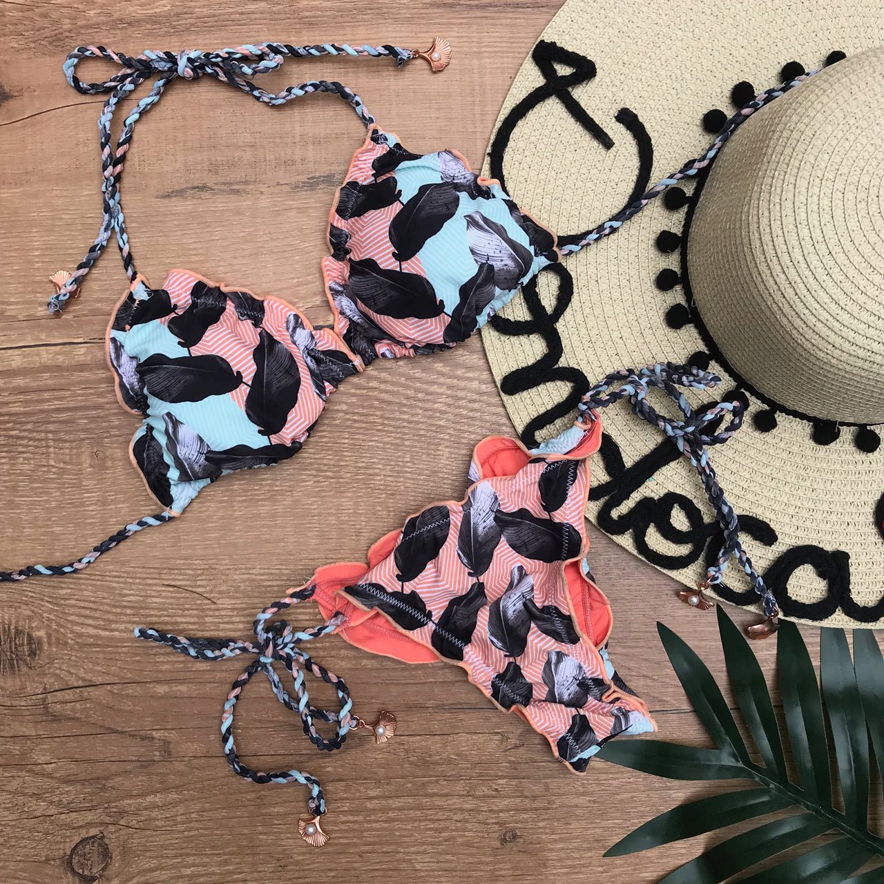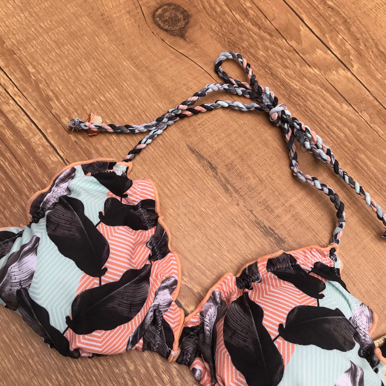 BIQUÍNI ALÇA TRANÇADA ESTAMPA FOLHAS