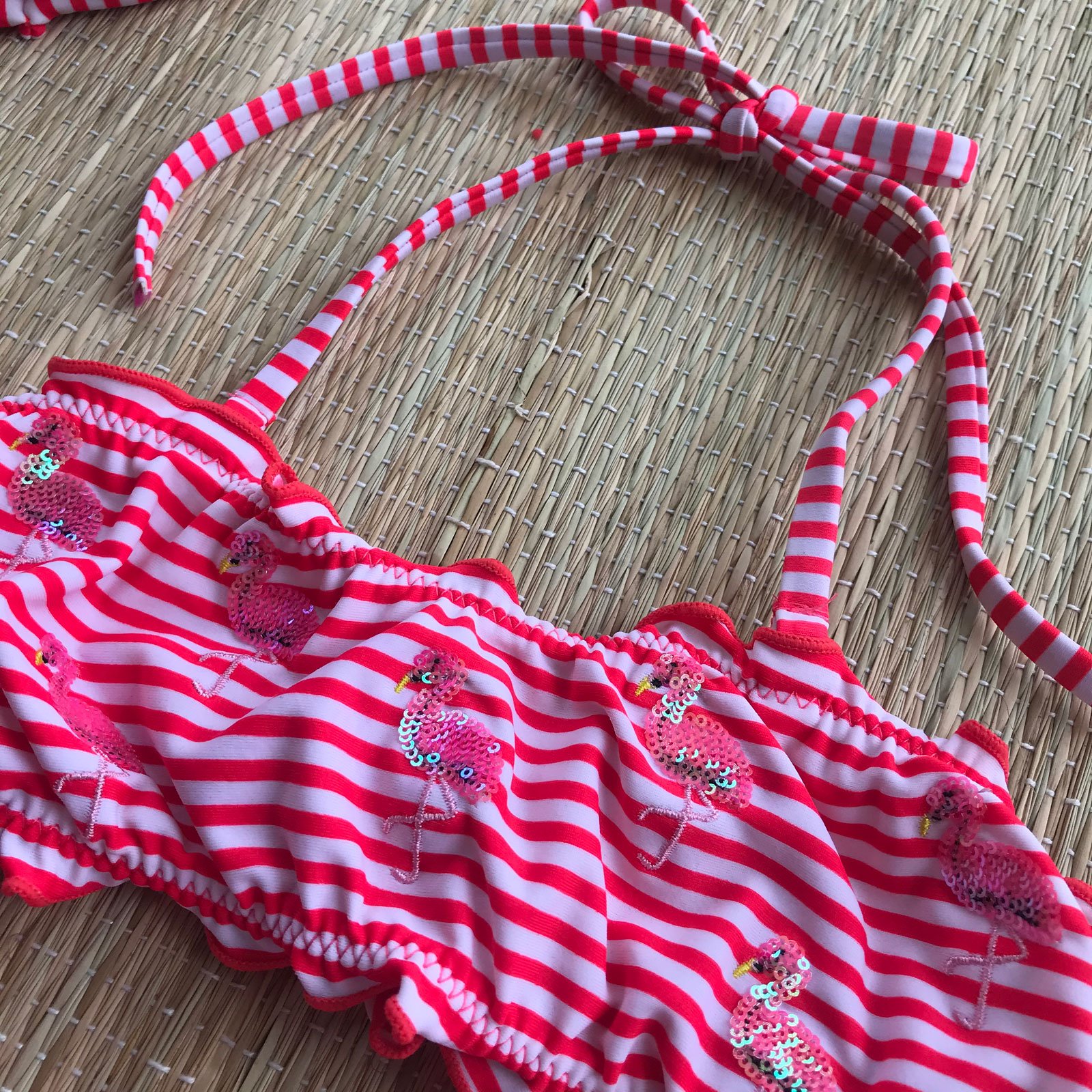 BIQUÍNI INFANTIL FLAMINGO LISTRADO CORAL