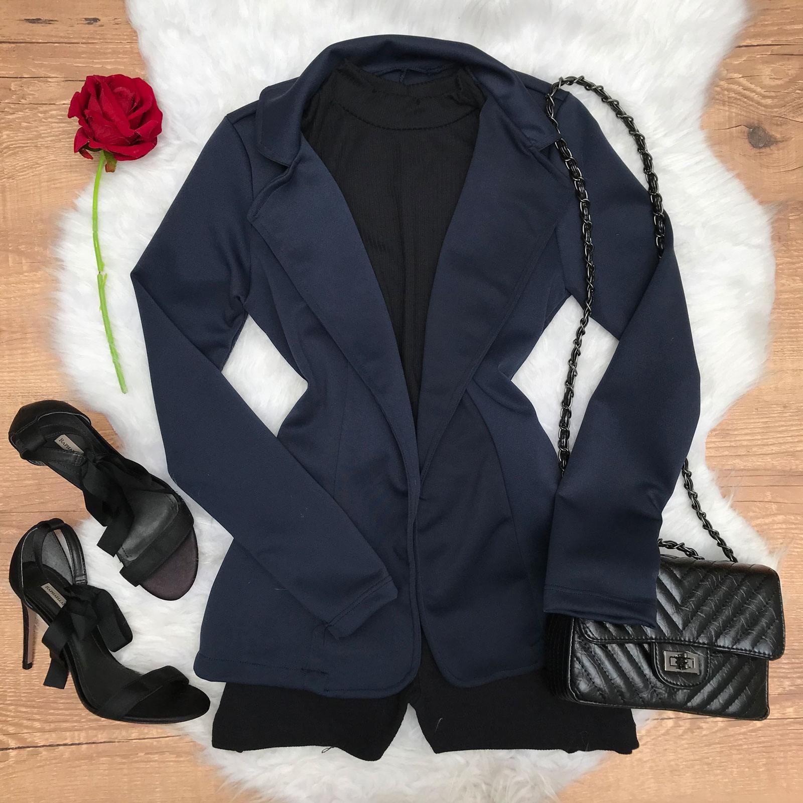 BLAZER ACINTURADO NEOPRENE GROSSO AZUL MARINHO