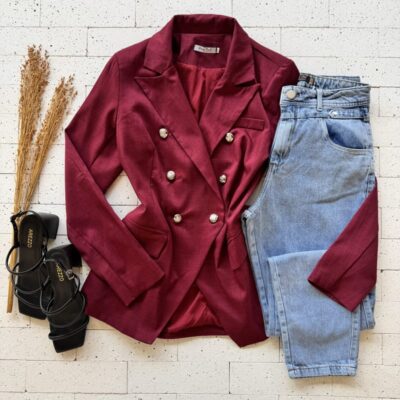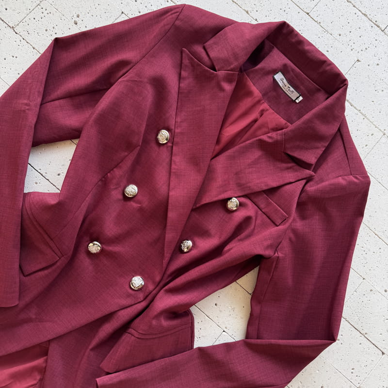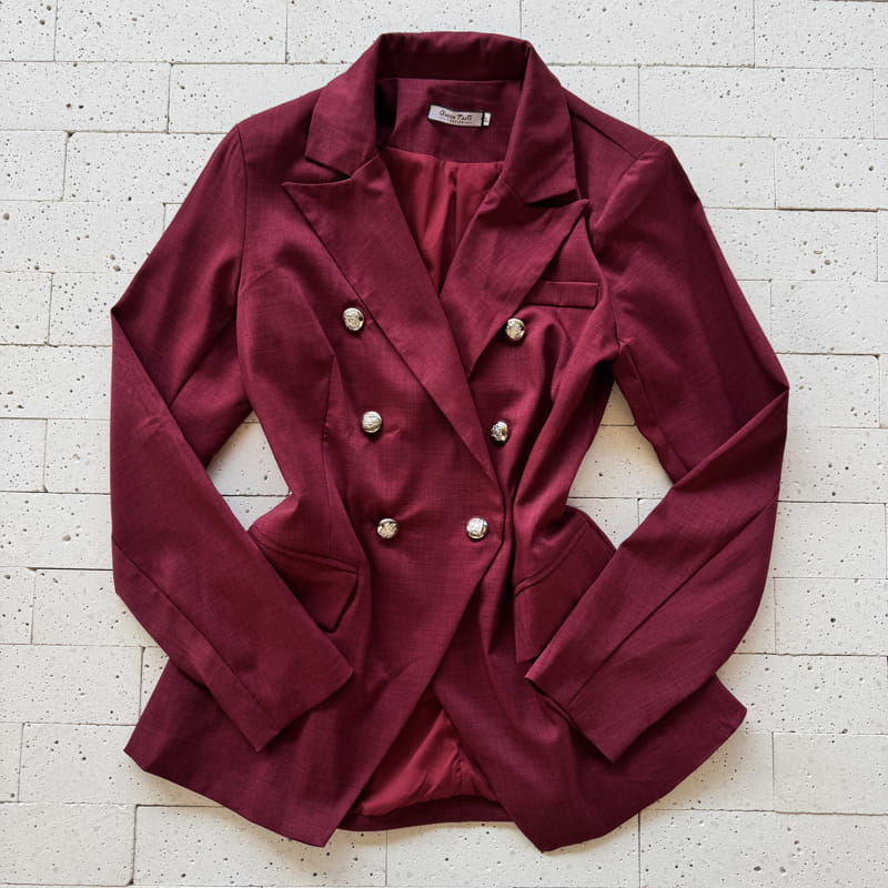 BLAZER ALONGADO COM OMBREIRAS E BOTÕES PRATA LUXO MARSALA