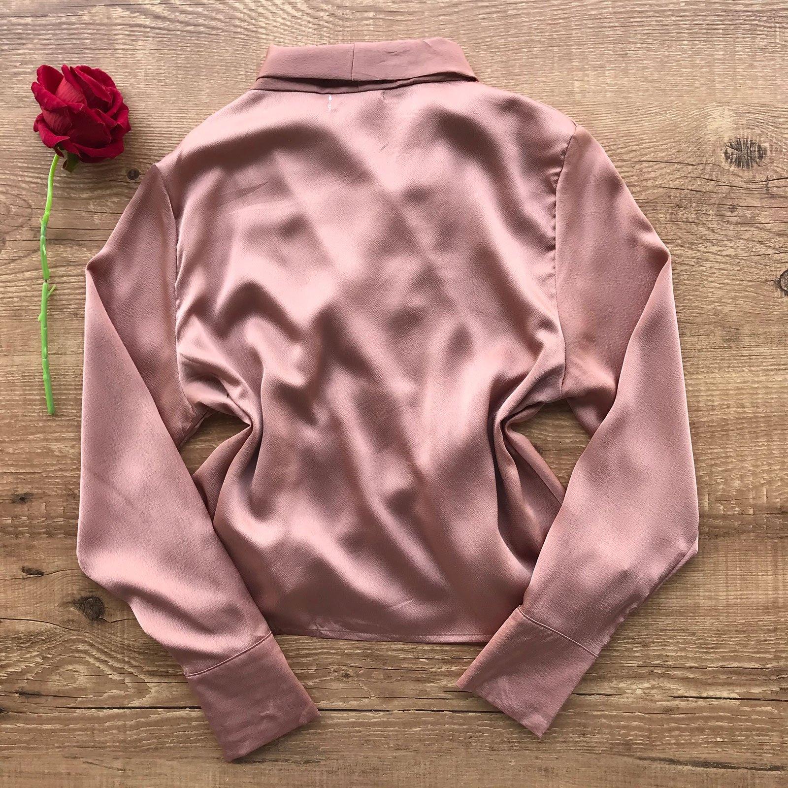 BLUSA ACETINADO DECOTE TRANSPASSADO ROSA QUEIMADO