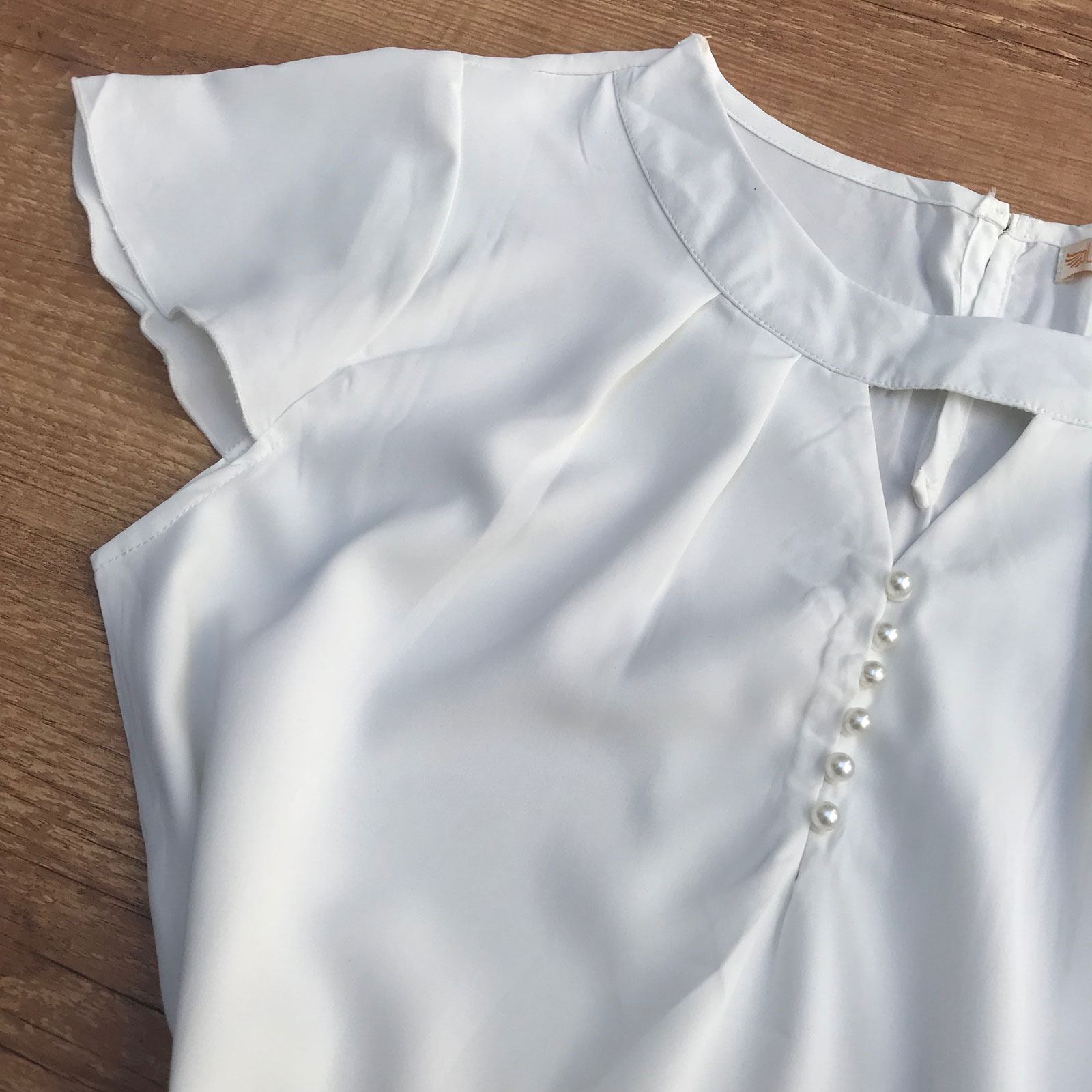 BLUSA MANGUINHA BOTÕES DE PÉROLAS BRANCA