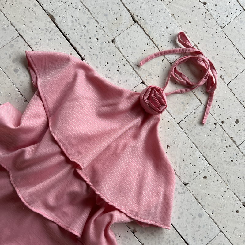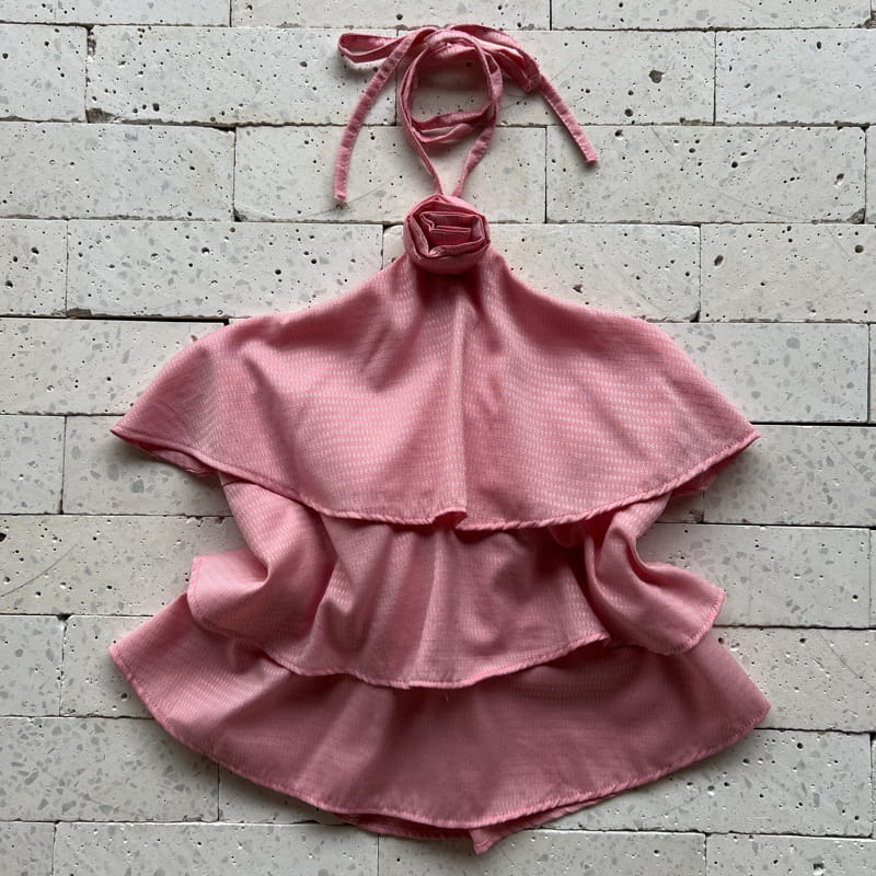 BLUSA BABADOS E FLOR NO PESCOÇO LUXO ROSA