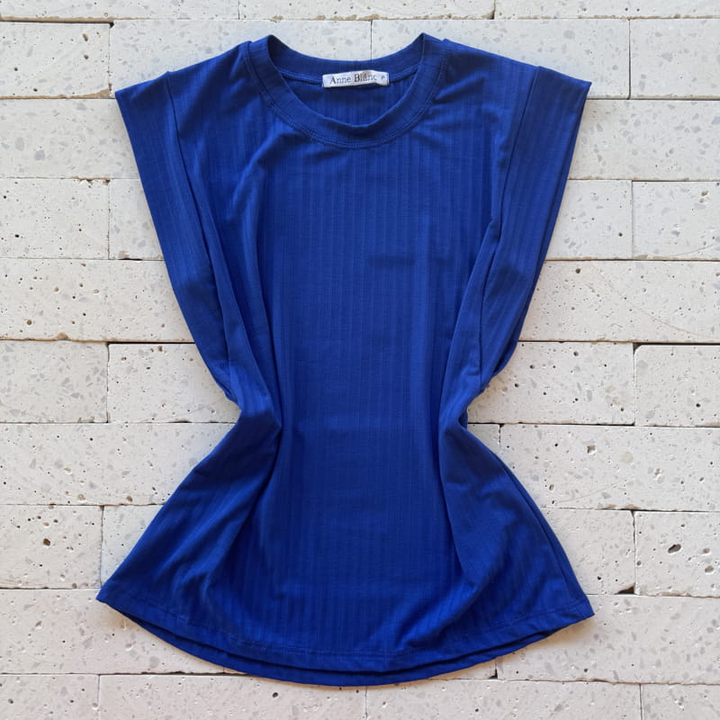 BLUSA CANELADA BÁSIC SEM MANGA AZUL BIC