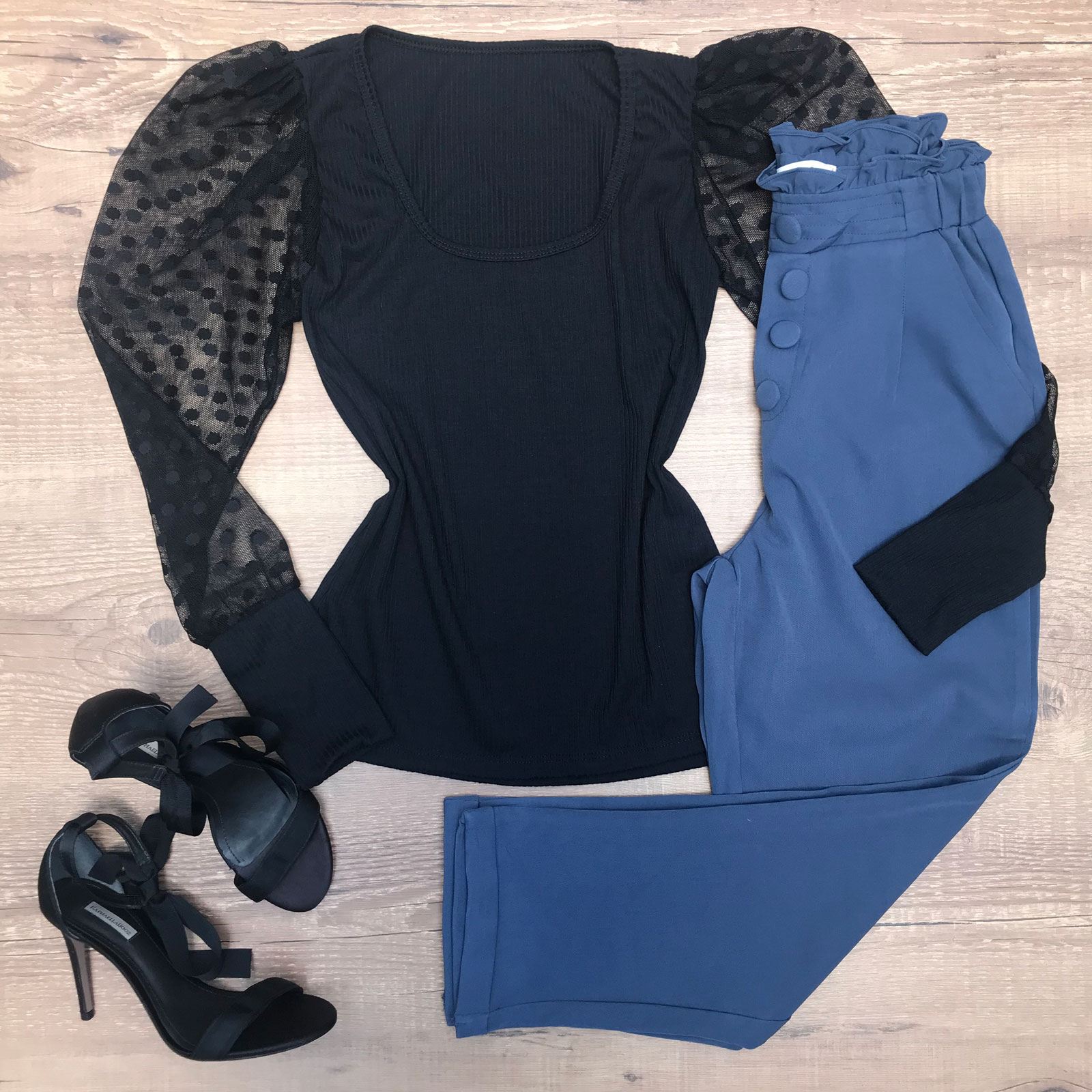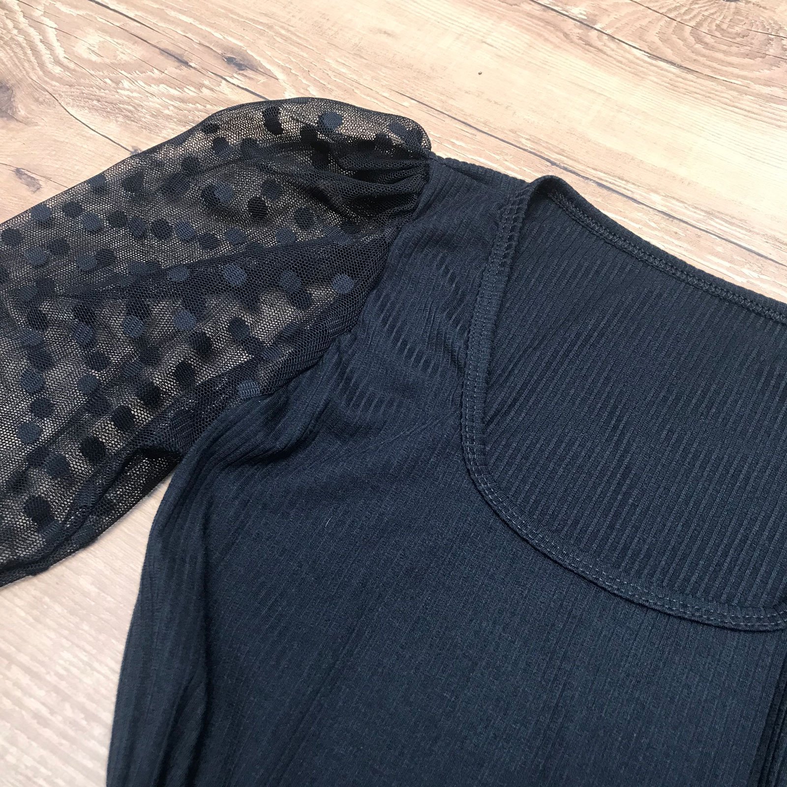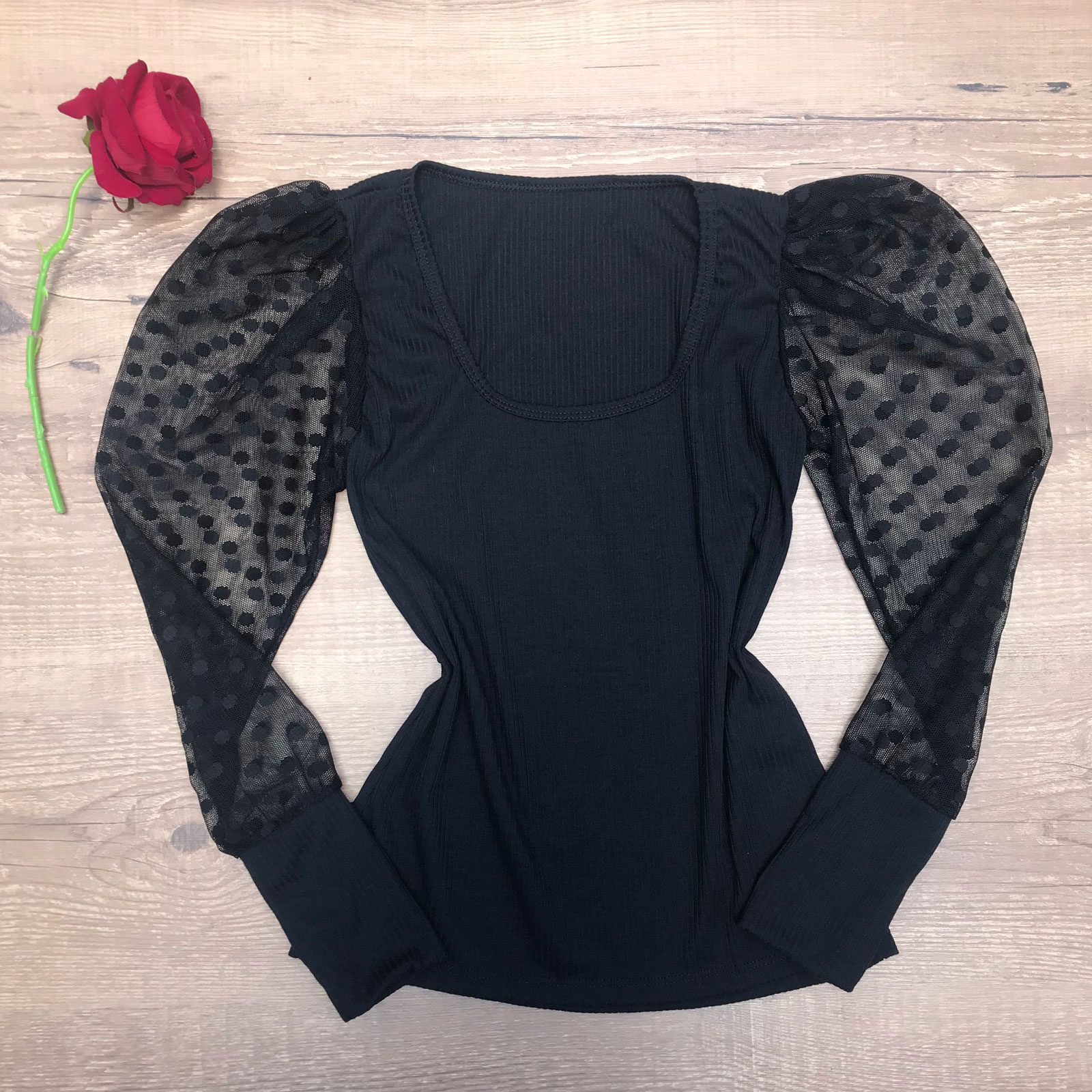 BLUSA CANELADA MANGA BUFANTE PRETA