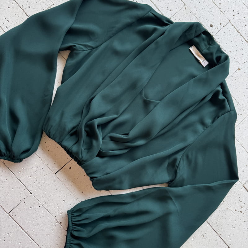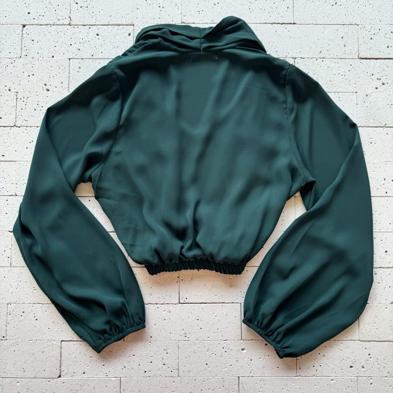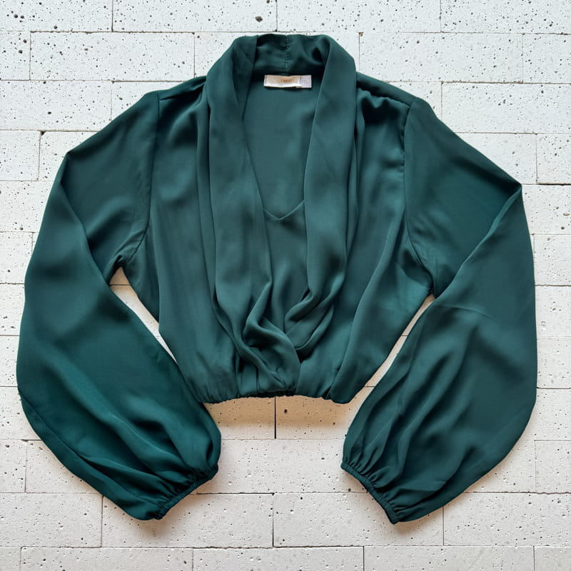 BLUSA CHIFON MANGA LONGA LUXO VERDE