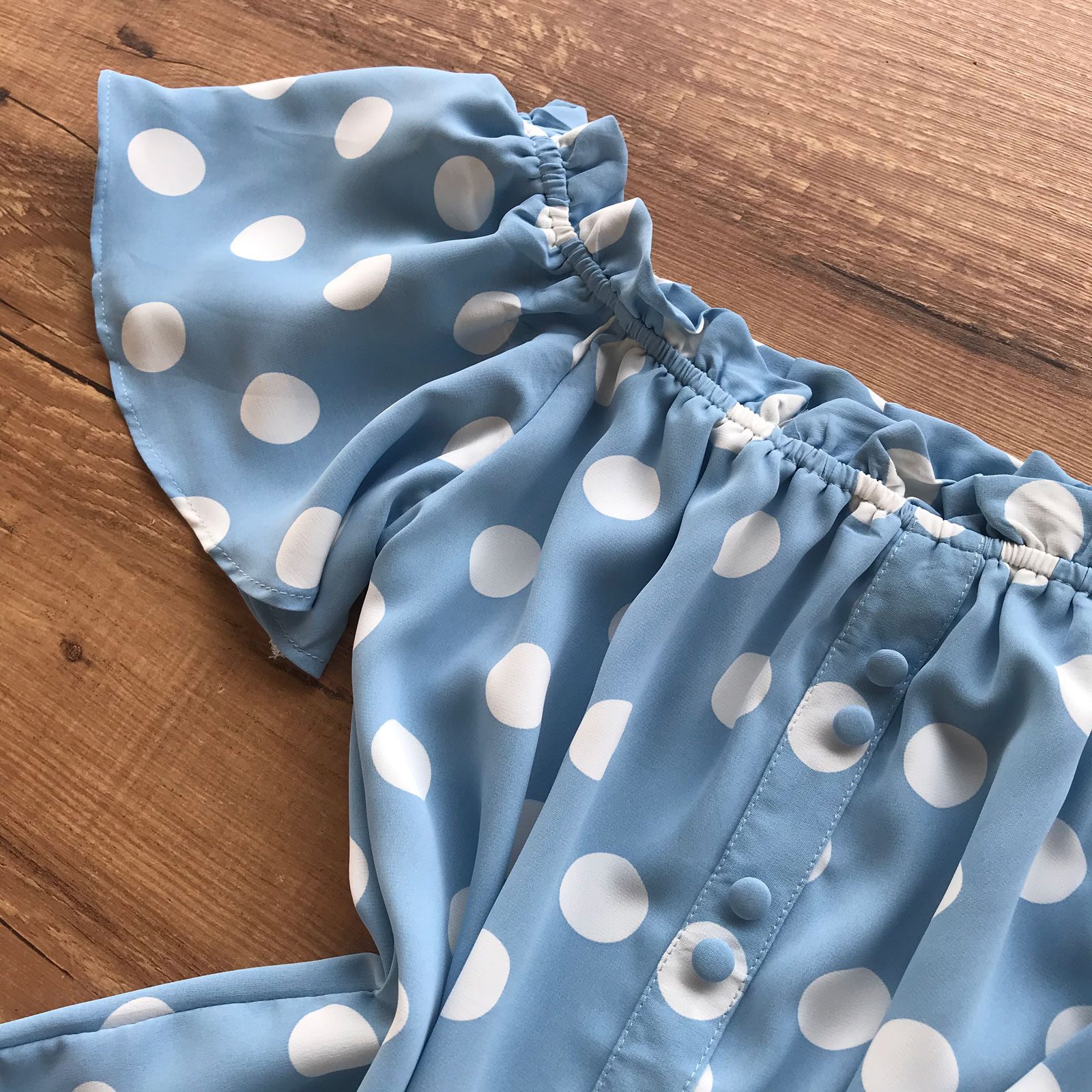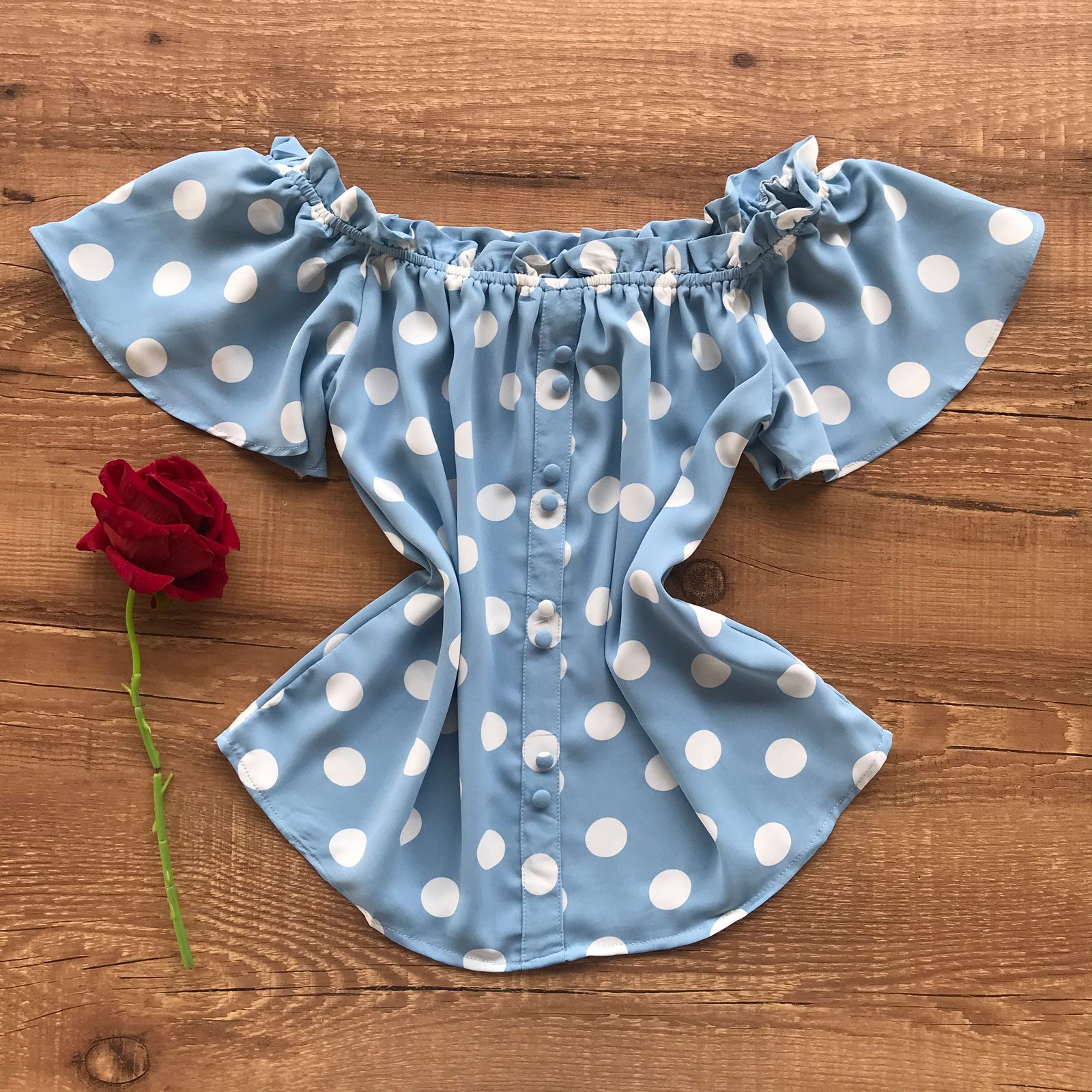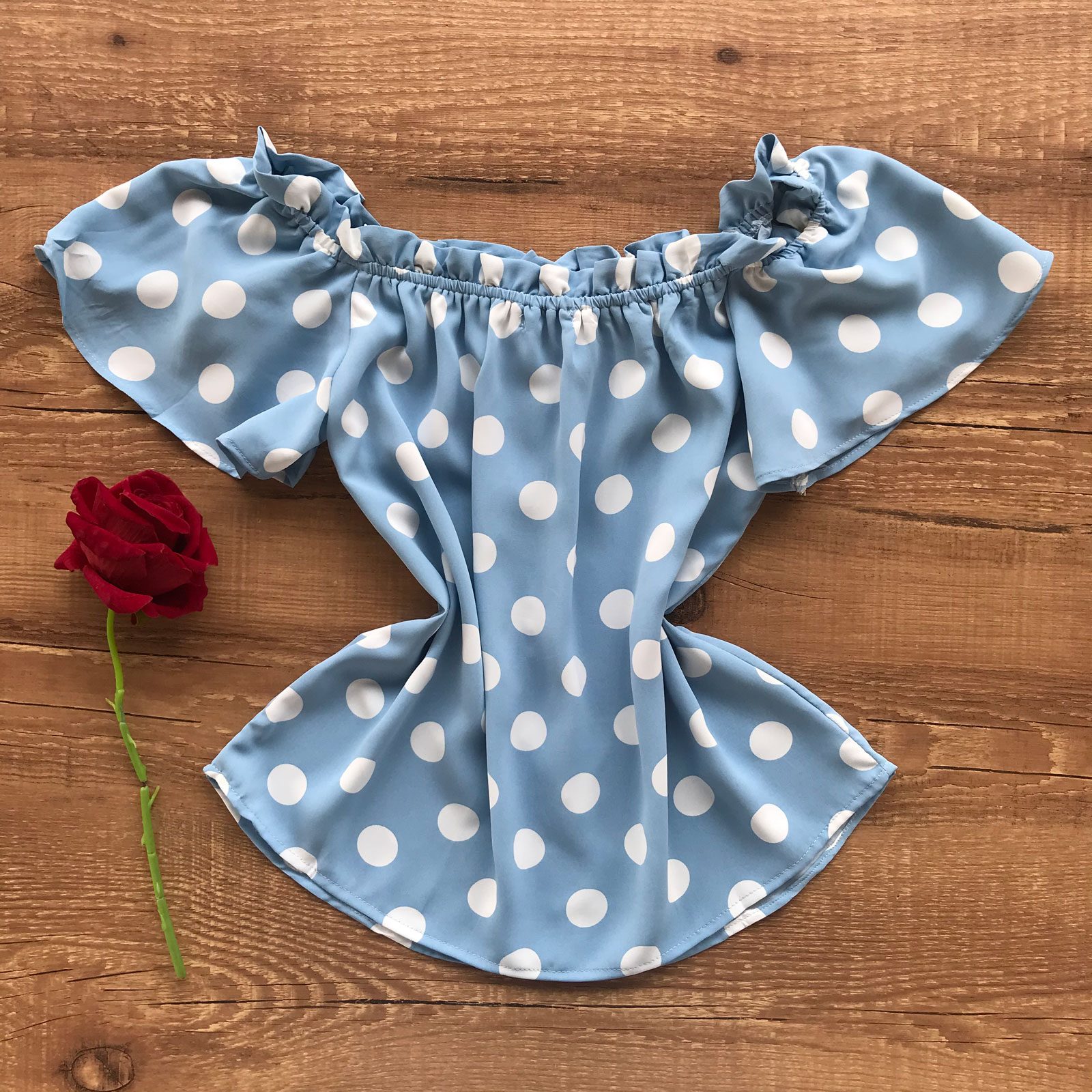 Escolha sua Blusa Ciganinha Poá Azul com nosso PROVADOR VIRTUAL