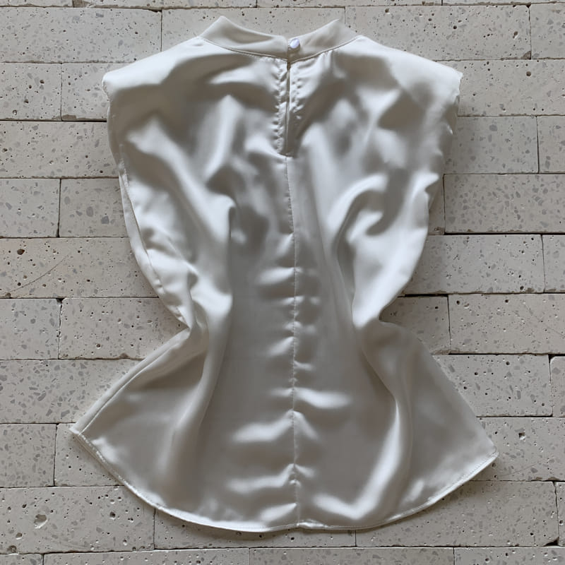 Blusa com Ombreiras Acetinada Off – Elegância e Qualidade na Dondoca