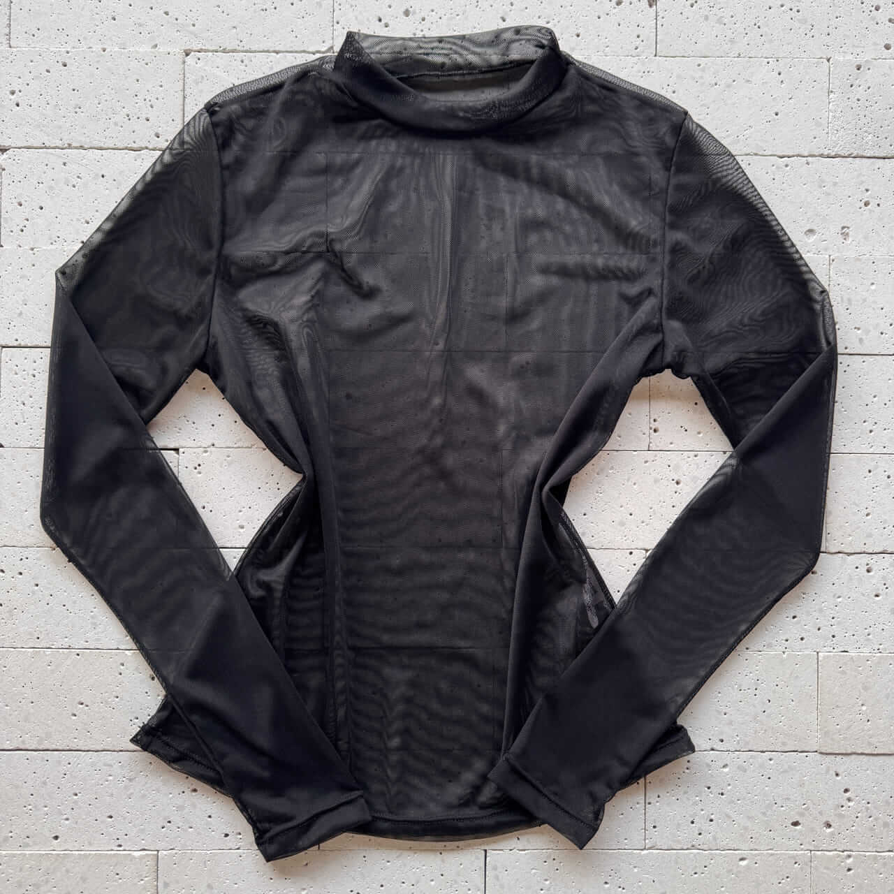 Blusa de Tule Manga Longa Preta – Transparência Sofisticada e Caimento Elegante