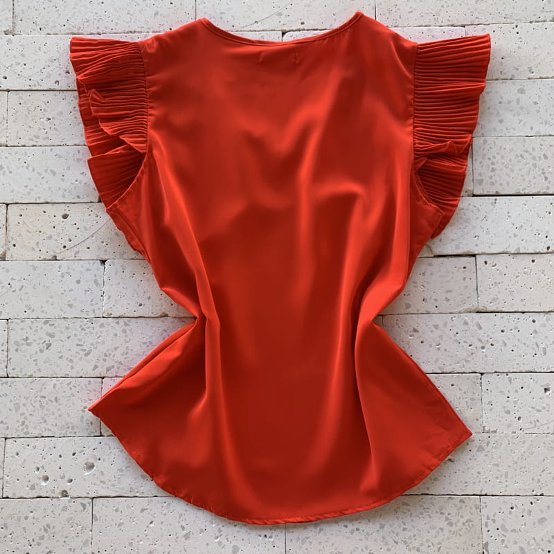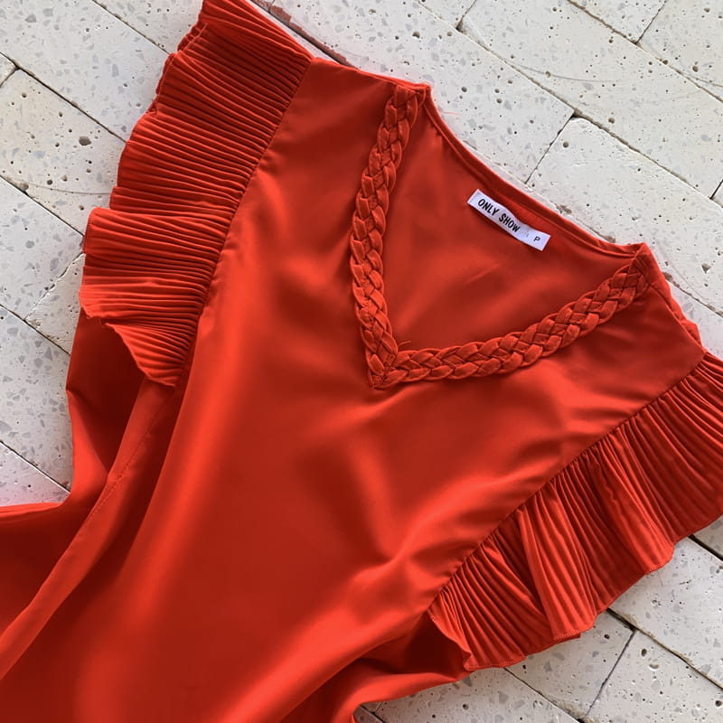 BLUSA DECOTE TRANÇADO E MANGA PLISSADA VERMELHO