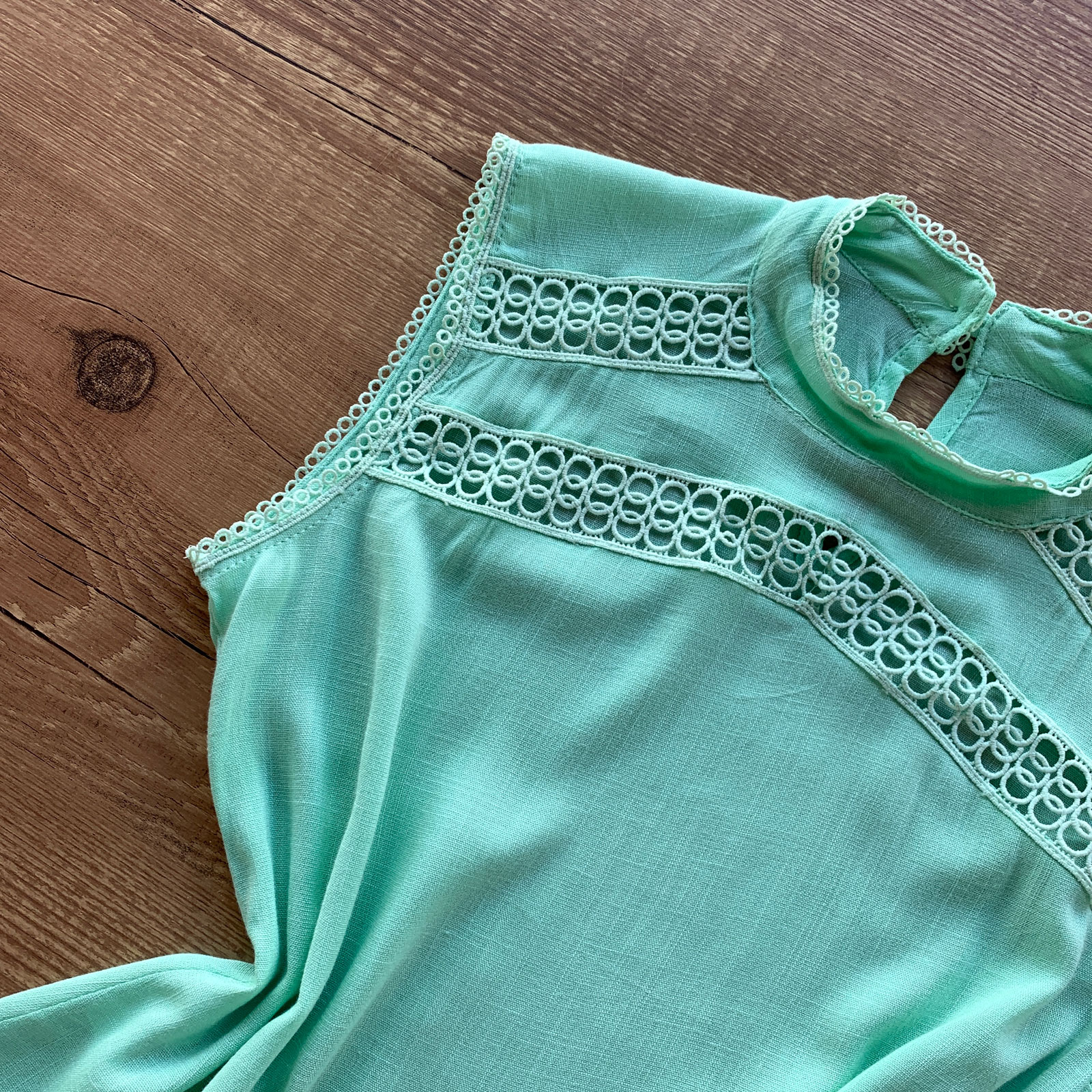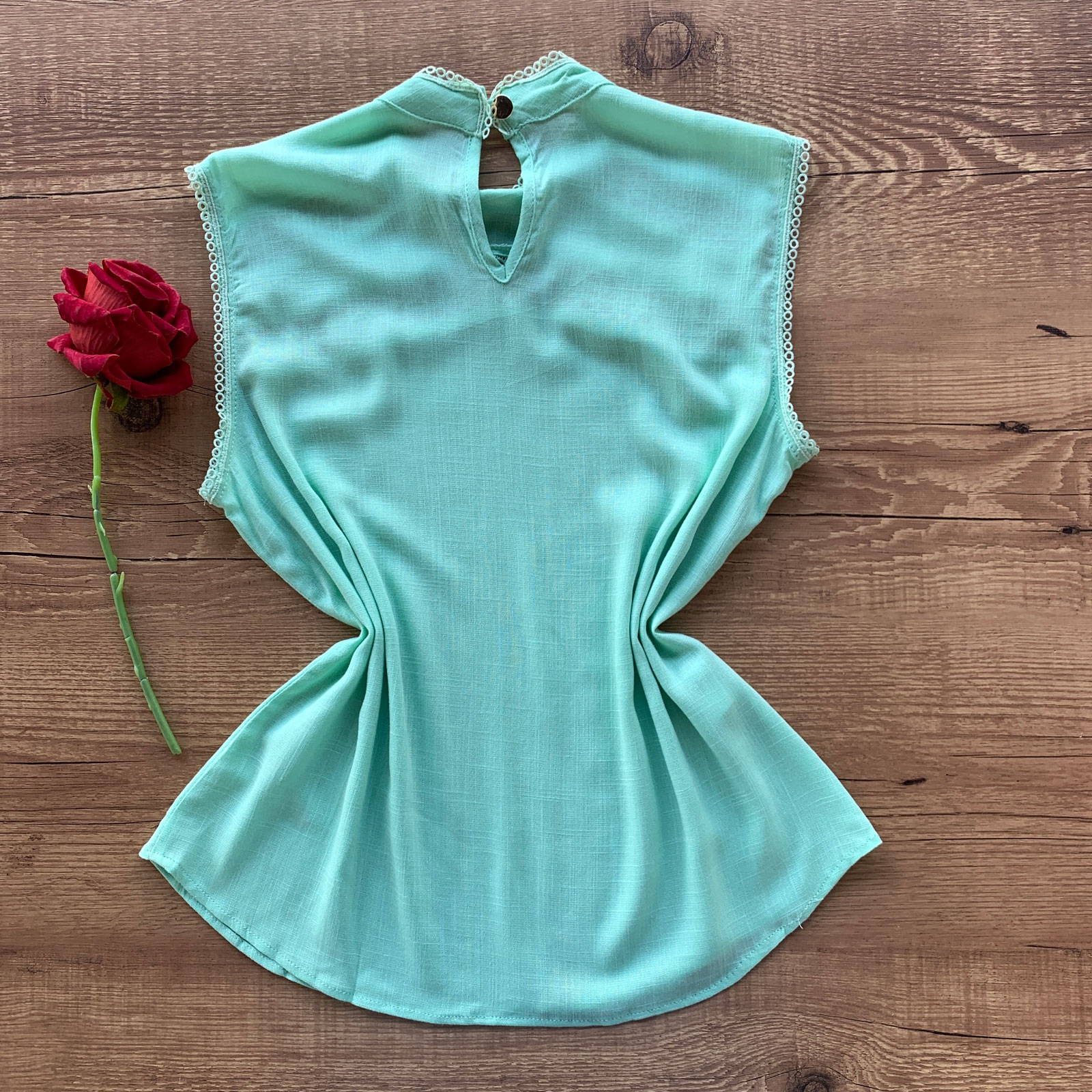As blusas lisas são essenciais para a mulher que ama um look arrumadinho e cheio de feminilidade. Com elas, o estilo está garantido e o charme também. A golinha alta traz um toque elegante, que é realçado pelos detalhes em gripier vazado. A peça é ideal para ser combinada à shorts e calças, a depender da ocasião. Vale apostar em acessórios alegres e óculos de sol para completar o visual!